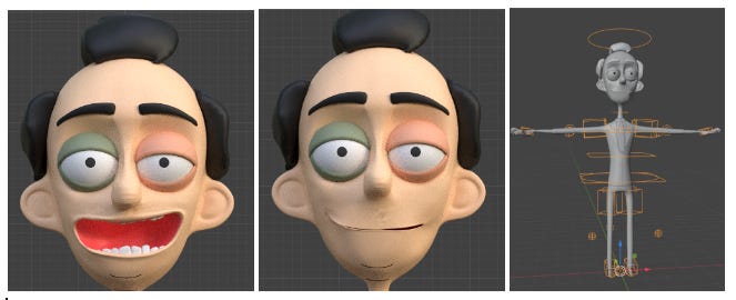 To render the animations from packaging we need a mesh for which we can map them to. For this I used a mesh created in Blender, rigged using AutoRig Pro with 52 ARKit-compatible shape keys for the face.